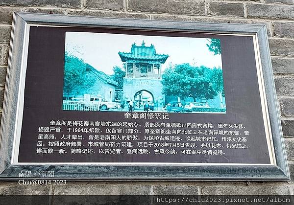 走到一個古城牆,城牆上有奎章閣修築記,沿著城牆走到奎章閣。南陽僅存的兩座寨門之一。