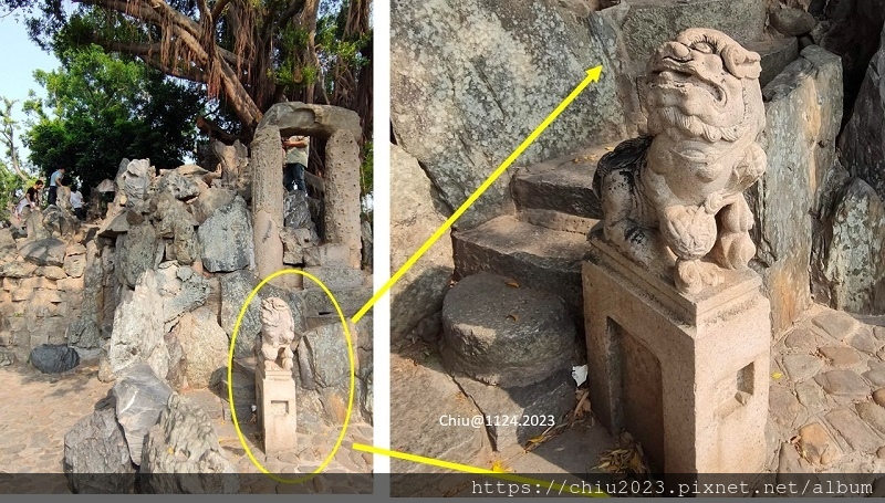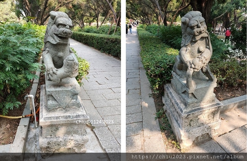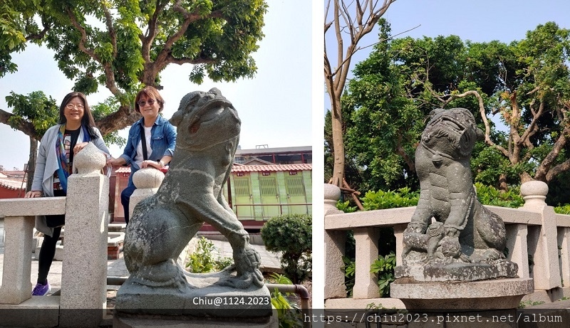 把自己當比例尺囉,可以看出這對石獅的大小。