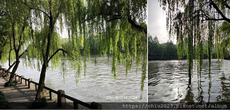 離開香積寺,隨著人潮走到旁邊的歷史街區,河岸邊楊柳垂掛,綠意盎然。